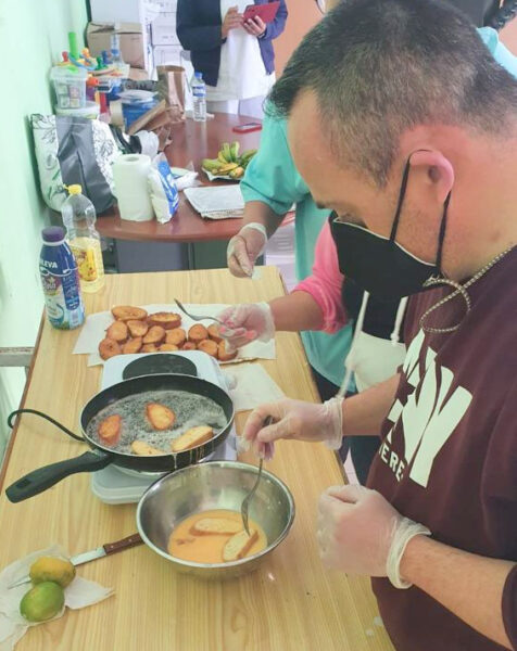 Las personas usuarias del Centro de Día NEP han participado en un Taller de Cocina, en el que elaboraron unas muy ricas torrijas, propias de Semana Santa, y cuya receta podrán enseñar a sus familias a hacer durante estas fiestas.